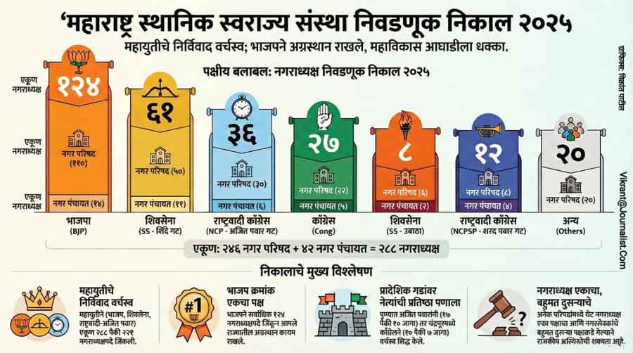 फक्त विजय नाही, तर वर्चस्व: भाजपचा १९ जागांवर झेंडा, दोन्ही ‘सेना’ शून्यावर!