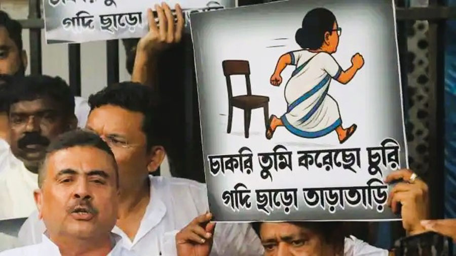 मुख्यमंत्री ममता बॅनर्जी यांच्या संपूर्ण भाषणात जोरदार घोषणांमुळे व्यत्यय आला. यावेळी सत्ताधारी तृणमूल काँग्रेसच्या आमदारांनीही “भाजप चोर आहे” अशा घोषणा देत प्रतिसाद दिला. गोंधळाची सुरुवात दुपारी १.५० वाजता झाली, जेव्हा मुख्यमंत्री ममता बॅनर्जी ठरावावर बोलण्यासाठी उभ्या राहिल्या. तेव्हा भाजपचे मुख्य सचेतक डॉ. शंकर घोष यांनी आरोप केला की, “आमच्या सर्व वक्त्यांना स्पीकर यांनी बोलू दिलं नाही.” स्पीकर बॅनर्जी यांनी या आरोपांना फेटाळून लावले आणि वारंवार भाजप आमदारांना शांत बसण्याचे आवाहन केले. मात्र, घोषणाबाजी सुरूच राहिली. विरोधी आमदार सभागृहाच्या मध्यभागी येऊन घोषणा देत होते आणि कागद फाडून हवेत फेकत होते.