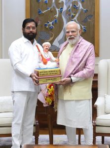 नवी दिल्ली : उपमुख्यमंत्री एकनाथ शिंदे यांनी आज पंतप्रधान नरेंद्र मोदी यांच्या निवासस्थानी जाऊन त्यांची सदिच्छा भेट घेतली. यावेळी त्यांनी त्यांना दिवाळी आणि नववर्षाच्या शुभेच्छा देऊन त्यांच्याशी संवाद साधला. यावेळी शिंदे यांनी त्यांना शाल, पुष्पगुच्छ आणि संत तुकाराम महाराजांची मूर्ती भेट म्हणून दिली. तसेच केंद्र आणि राज्यातील अनेक विषयावर सकारात्मक चर्चा केली. यावेळी मोदी यांनी एनडीए मधील सर्व घटक पक्ष हे विचाराने जोडले गेलेले असून पक्ष ही आघाडी अशीच भक्कम रहावी अशी अपेक्षा व्यक्त केली. तसेच संपूर्ण शिंदे कुटुंबाला दिवाळीच्या शुभेच्छा दिल्या.