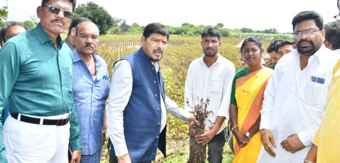धाराशिव /मुंबई : आसमानी संकट कोसळून मराठवाड्यातील शेतीचे अतोनात नुकसान झालेले आहे.शेतपिकांचे नुकसान झाल्यामुळे मराठवाड्यातील शेतकरी हवालदिल झाला आहे. शेतकऱ्यांचे अश्रु पुसण्यासाठी आज रिपब्लिकन पक्षाचे राष्ट्रीय अध्यक्ष केंद्रीय सामाजिक न्याय राज्यमंत्री.रामदास आठवले हे थेट शेताच्या बांधावर पोहोचले. मराठवाड्यात ओला दुष्काळ जाहीर करावा या मागणीसाठी आपण मुख्यमंत्री देवेंद्र फडणवीस यांची भेट घेणार आहोत.तसेच पूरग्रस्तांना शासनाने दिलेल्या मदतीत वाढ करण्याची गरज असून त्यासाठी आपण केंद्र सरकारकडून राज्याला भरीव मदतीचे विशेष पॅकेज मिळवून देण्यासाठी आपण प्रयत्न करणार आहोत.तसेच पूरग्रस्तांना कॉर्पोरेट क्षेत्रातील कंपन्यांनी मदत करण्याची गरज असून कॉर्पोरेट कंपन्यांनी पूरग्रस्त जिल्ह्यांना दत्तक घ्यावे असे आवाहन रिपब्लिकन पक्षाचे राष्ट्रीय अध्यक्ष केंद्रीय सामाजिक न्याय राज्यमंत्री रामदास आठवले यांनी आज केले.