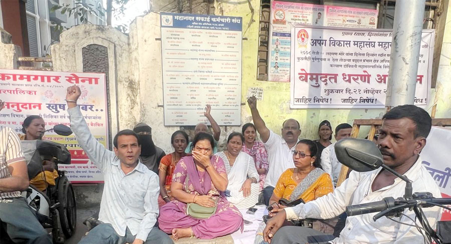 कल्याण : कल्याण पश्चिमेतील लालचौकी परिसरात असलेल्या दिव्यांग स्टॉलवर कल्याण डोंबिवली महानगरपालिकेने कारवाई केल्याने अपंग विकास महासंघाने केडीएमसी मुख्यालयाबाहेर बेमुदत धरणे आंदोलन सुरु केले आहे. कल्याण डोंबिवली महानगरपालिकेने २००८ साली लक्ष्मण मोरे यांना लालचौकी परिसरात दिव्यांग स्टॉलची परवानगी दिली आहे. असे असतांना कुठलीही पूर्वसूचना न देता प्रभाग अधिकारी धनंजय थोरात यांनी या दिव्यांग स्टॉलवर कारवाई करत तोडले आहे. यामुळे दिव्यांग लक्ष्मण मोरे यांच्या उदरनिर्वाहाचा प्रश्न निर्माण झाला असून याप्रकरणी दोषी असणाऱ्यांवर कारवाई करण्याच्या मागणीसाठी कल्याण डोंबिवली महानगरपालिकेच्या विरोधात बेमुदत धरणे आंदोलन करत असल्याची माहिती अपंग विकास महासंघाचे अध्यक्ष अशोक भोईर यांनी दिली.
