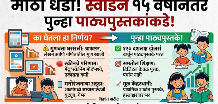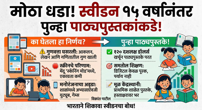 >> स्वीडनने २००९ साली एक क्रांतिकारी निर्णय घेतला. शाळांमधील पारंपरिक पाठ्यपुस्तके बाद करून त्यांच्या जागी डिजिटल स्क्रीन आणि टॅबलेट आणले. “भविष्यातील शिक्षण” असे बिरुद मिरवत हे धोरण संपूर्ण देशभर राबवण्यात आले. युरोपातील सर्वात प्रगतशील, तंत्रज्ञानस्नेही देश म्हणून जगाने स्वीडनच्या या पाऊलाचे कौतुक केले. शाळा ‘स्मार्ट’ झाल्या, वर्गखोल्या ‘डिजिटल’ झाल्या, पण १५ वर्षांनंतर हाच देश आता तब्बल १२० दशलक्ष डॉलर्स म्हणजे सुमारे एक हजार कोटी रुपये खर्च करून पुन्हा छापील पाठ्यपुस्तके शाळांत आणत आहे. हा केवळ धोरणबदल नाही, हा एका मोठ्या चुकीचा जाहीर कबुलीजबाब आहे.