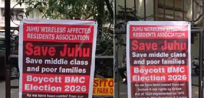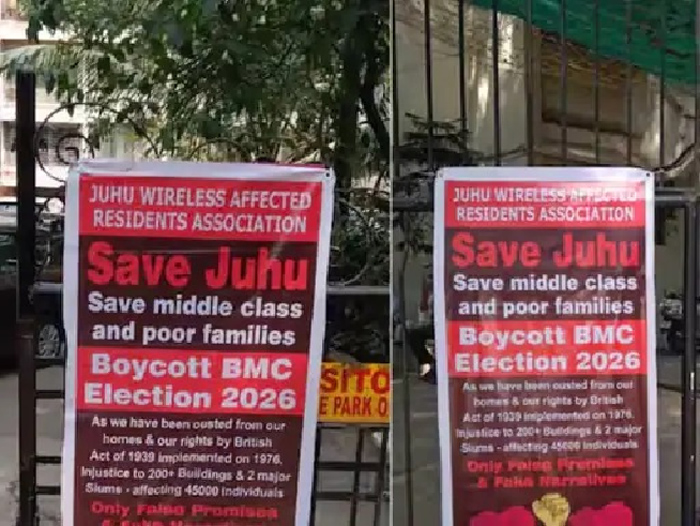मुंबई : मुंबई महानगरपालिकेच्या निवडणुकीत प्रशासनाकडून जास्तीत जास्त मतदानासाठी आवाहन केलं जात असतानाच जुहू परिसरात सुमारे ३५ हजार नागरिकांनी मतदानावर बहिष्कार टाकण्याचा इशारा दिला आहे. जुहूतील रुईया पार्क आणि कराची सोसायटी परिसरासह जवळपास २०० इमारतींमध्ये राहणाऱ्या नागरिकांनी हा निर्णय घेतल्याचं स्पष्ट होत असून परिसरात बहिष्काराच्या आशयाचे बॅनर झळकू लागले आहेत.