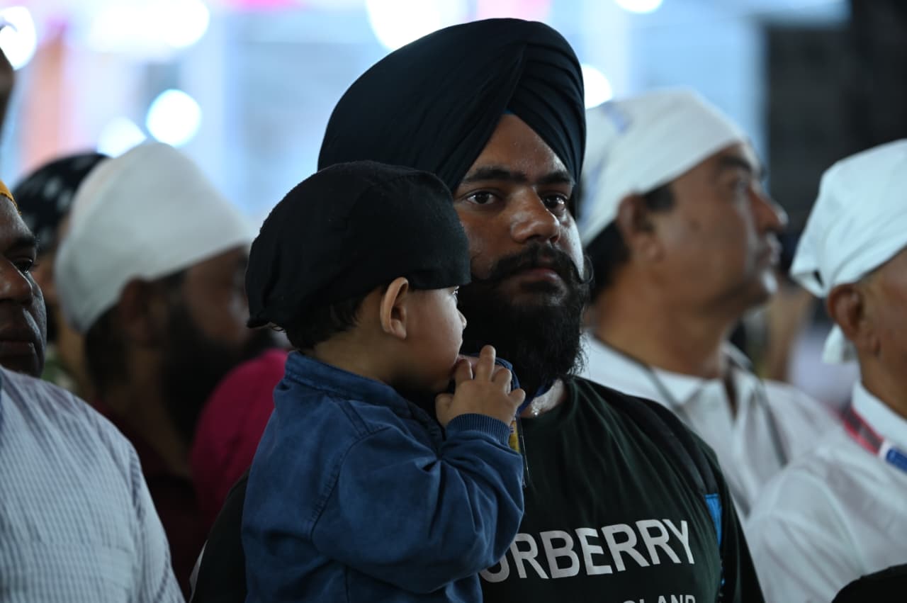नवी मुंबई : ‘हिंद-दी-चादर’ अंतर्गत श्री गुरू तेग बहादूर साहिबजी यांच्या ३५० व्या शहीदी समागम वर्षानिमित्त खारघर येथील ओवे मैदानावर आयोजित भव्य धार्मिक कार्यक्रमात दुसऱ्या दिवशीही लाखो भाविकांची अलोट गर्दी झाली आहे. सकाळपासूनच दर्शनासाठी भाविकांच्या रांगा लागल्या होत्या. “वाहे गुरु” व “बोले सो निहाल, सत श्री अकाल” च्या जयघोषात श्री गुरू ग्रंथ साहिबजी यांचे पावन दर्शन घेतले जात आहे. संपूर्ण परिसर भक्तिमय वातावरणाने न्हाऊन निघाला होता. अखंड कीर्तन, गुरुवाणी आणि प्रार्थनेमुळे वातावरण अधिकच आध्यात्मिक झाले होते.