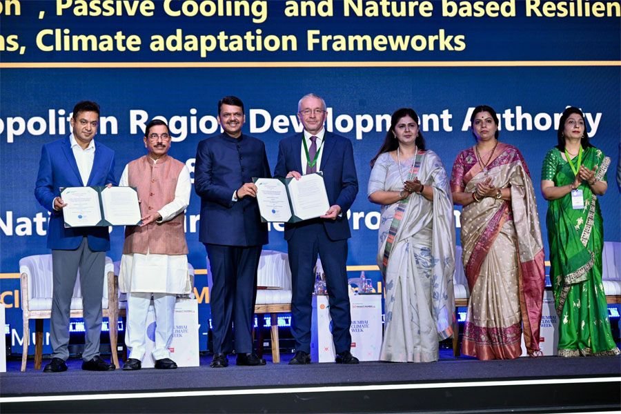 राज्यात औद्योगिक क्षेत्रात अक्षय ऊर्जेचा वापर वाढवणे, शहरांमध्ये इलेक्ट्रिक मोबिलिटीला चालना देणे, सार्वजनिक वाहतूक व लॉजिस्टिक प्रणाली अधिक पर्यावरणपूरक करणे यावर भर दिला जात आहे. पूरनियंत्रण व्यवस्था, हवामान स्मार्ट नागरी नियोजन आणि डेटा आधारित अंदाज प्रणाली विकसित करण्याचे काम सुरू आहे. मुंबई महानगर क्षेत्रातील मोठ्या पायाभूत प्रकल्पांमध्ये सुरुवातीपासूनच शाश्वतता आणि आपत्ती प्रतिकारक्षमता यांचा समावेश केला जात असल्याचेही त्यांनी सांगितले.