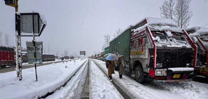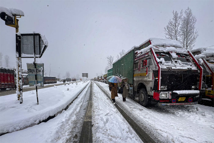 श्रीनगर : मंगळवारी काश्मीरमध्ये बर्फवृष्टी झाली. ज्यामुळे श्रीनगर-जम्मू राष्ट्रीय महामार्ग बंद झाला आणि हवाई सेवा विस्कळीत झाली. खोरे पूर्णपणे बर्फाने झाकले गेले होते. हवामान खात्याने मंगळवारी संध्याकाळपर्यंत बहुतेक ठिकाणी हलका ते मध्यम पाऊस किंवा हिमवृष्टी होण्याची शक्यता वर्तवली आहे, काही ठिकाणी वादळ आणि जोरदार वारे वाहण्यासह मध्यम ते मुसळधार पाऊस किंवा हिमवृष्टी होण्याची शक्यता वर्तवली आहे.