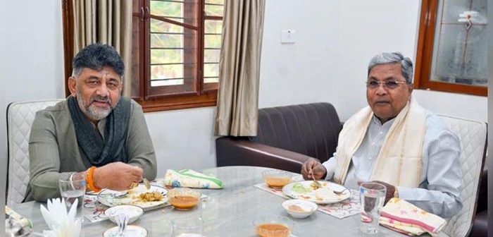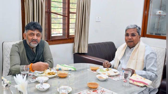 बंगळुरु : कर्नाटकातील सत्ताधारी काँग्रेसमध्ये सुरू असलेल्या नेतृत्ववादाच्या दरम्यान, मुख्यमंत्री सिद्धरामय्या आणि उपमुख्यमंत्री डीके शिवकुमार शनिवारी एकत्र नाश्ता करताना दिसले. नाश्त्यानंतर, दोन्ही नेत्यांनी संयुक्त पत्रकार परिषद घेतली आणि त्यांच्यातील मतभेदाचे वृत्त फेटाळून लावले. कर्नाटकचे मुख्यमंत्री सिद्धरामय्या म्हणाले, “आमच्यात कोणतेही मतभेद नाहीत आणि भविष्यातही होणार नाहीत…” ते पुढे म्हणाले, “आमचा अजेंडा २०२८ च्या निवडणुका आहेत. स्थानिक स्वराज्य संस्थांच्या निवडणुका महत्त्वाच्या आहेत. आम्ही त्यांच्यावर चर्चा केली. २०२८ च्या निवडणुकीत काँग्रेसला पुन्हा सत्तेत आणण्यावरही आम्ही चर्चा केली. आम्ही एकत्र निवडणुका लढवण्यावर चर्चा केली.”