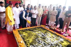 नायगाव (ता. खंडाळा) येथे आयोजित क्रांतिज्योती सावित्रीबाई फुले यांच्या १९५ व्या जयंती कार्यक्रमात ते बोलत होते. यावेळी सावित्रीबाई फुले यांच्या १४३ कोटी रुपये खर्चून उभारण्यात येणाऱ्या स्मारकाचे तसेच महिला प्रशिक्षण केंद्राचे भूमिपूजन करण्यात आले. यावेळी विधानपरिषदेचे सभापती प्रा. राम शिंदे, अन्न व नागरी पुरवठा मंत्री छगन भुजबळ, पालकमंत्री शंभूराज देसाई, ग्रामविकास मंत्री जयकुमार गोरे, मदत व पुनर्वसन मंत्री मकरंद पाटील, राज्य महिला आयोगाच्या अध्यक्षा रुपाली चाकणकर, आमदार डॉ. अतुल भोसले, मनोज घोरपडे, सचिन पाटील, ग्रामविकास विभागाचे प्रधान सचिव एकनाथ डवले, नायगावच्या सरपंच स्वाती जमदाडे आदी उपस्थित होते.