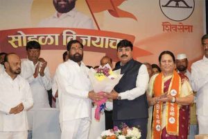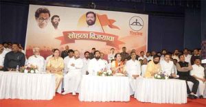 नगर परिषदांच्या निकालांमधून शिवसेना चांदा ते बांद्यापर्यंत विस्तारली आहे. घराघरात धनुष्यबाण पोहोचवल्याबद्दल उपमुख्यमंत्री शिंदे यांनी मतदारांचे आभार मानले. ते म्हणाले की, लोकसभेत शिवसेनेचा स्ट्राईक रेट सर्वाधिक होता. विधानसभा निवडणुकीतही स्ट्राईक रेट इतर पक्षांच्या तुलनेत चांगला होता. आता कमी जागा लढून जास्त जागा जिंकलो हा देखील चांगला स्ट्राईक रेट आहे, असे उपमुख्यमंत्री शिंदे म्हणाले. आमदार नसलेल्या ठिकाणीही शिवसेनेचे नगराध्यक्ष निवडून आले आहेत, असे ते म्हणाले. राज्यात शिवसेनेचे ६२ नगराध्यक्ष निवडून आले असून हा आकडा ७० पर्यंत वाढेल, असे ते म्हणाले. यात शिवसेनेच्या ३३ लाडक्या बहिणी नगराध्यक्षपदी निवडून आल्या, असे ते म्हणाले. नगर परिषद निवडणुकीत उबाठा आणि महाविकास आघाडीने पराभव मान्य केला होता. त्यांनी कार्यकर्त्यांना वाऱ्यावर सोडलं होतं. जे घरी बसले त्यांना कायमचे घरी बसवण्याचे काम महाराष्ट्रातील जनतेनं केलं, अशी टीका उपमुख्यमंत्री शिंदे यांनी उबाठावर केली. महाविकास आघाडीच्या तिन्ही पक्षांच्या बेरजेपेक्षा शिवसेनेच्या नगराध्यक्षांची संख्या अधिक आहे. सर्वसामान्यांची नाळ शिवसेनेची जोडलेली आहे, ती कधीही तुटू शकत नाही. शिवसेनेला हरवणं अशक्य आहे, असे उपमुख्यमंत्री शिंदे म्हणाले. महापालिका निवडणुकीत देखील महायुतीचाच भगवा फडकेल, असा विश्वास त्यांनी यावेळी व्यक्त केला.