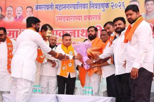 महापालिका निवडणुकीच्या रणधुमाळीत शिवसेनेचे पक्षप्रमुख व उपमुख्यमंत्री एकनाथ शिंदे यांनी आज अमरावतीत थेट रणशिंग फुंकले. नेहरू मैदानावर झालेल्या जाहीर प्रचारसभेत त्यांनी विकास, महिला सशक्तीकरण, मूलभूत सुविधांचा अभाव आणि विरोधकांच्या अपयशावर जोरदार हल्लाबोल करत, “जे बोलतो ते करतो, कमी बोलतो पण जास्त काम करतो,” असा ठाम विश्वास मतदारांना दिला.