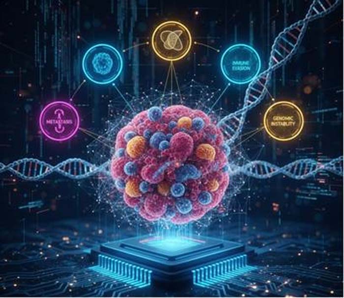 नवी दिल्ली : कर्करोगाला समजून घेण्याच्या आणि त्यावर उपचार करण्याच्या पद्धतीमध्ये परिवर्तन करता येवू शकेल, अशी कृत्रिम प्रज्ञेची चौकट एका नव्या अभ्यासातून सादर करण्यात आली आहे. केवळ पेशींच्या आकाराने किंवा प्रसाराने नव्हे तर त्याच्या अणूंच्या बांधणी वरून- ही चौकट आपल्याला कर्करोगाकडे पाहण्याचा एक नवीन दृष्टीकोन प्रदान करेल. कर्करोग हा केवळ अनिर्बंध वाढणाऱ्या पेशींचा आजार नाही – तो कर्करोगाच्या हॉलमार्क्स नावाच्या न दिसून येणाऱ्या जैविक क्रियांच्या लक्षणांवरूनही दिसून येतो. निरोगी पेशी घातक कशा बनतात: त्या कशा पसरत जातात, रोगप्रतिकारक शक्ती कशी क्षीण करत जातात आणि उपचारांना कसा विरोध करतात,हे या हॉलमार्क्स वरुन स्पष्ट होते. अनेक दशकांपासून, वैद्यकीय तज्ञ ‘टीएनएम’ (सुरूवात,वाढ आणि इतर भागात प्रसार) सारख्या स्टेजिंग सिस्टमवर अवलंबून असत, जे ट्यूमरचा आकार आणि प्रसाराचे वर्णन करतात. परंतु अशा सिस्टम्स मधून बहुतेकदा पेशींच्या गहन अणूस्तरावरील बांधणीविषयक माहिती मिळत नसे -म्हणूनच कर्करोगाच्या “समान” टप्प्यांवर असणाऱ्या दोन रुग्णांमध्ये परिणाम खूप वेगळे का असू शकतात,यांचे कारण स्पष्ट होत नसे.
